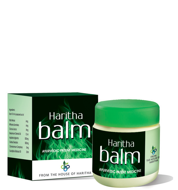 Ayurvedic pain Balm for all kinds of muscular pain and sprain. Haritha Balm reduces all kinds of pain including head ache, cold, blocked nostrils, back pain, rheumatic pain etc. It is effective to vaporize to cure cold and for other pain this can be applied externally.